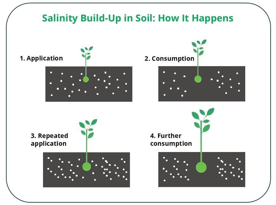 Water-wise fertilization also addresses the risk of salinity build-up, a common issue in water-scarce areas where precipitation is insufficient to remove salts from the root zone, while irrigation water may be high in salts. High salinity interferes with water uptake by the plant and requires additional "leaching" irrigation, wasting precious water.