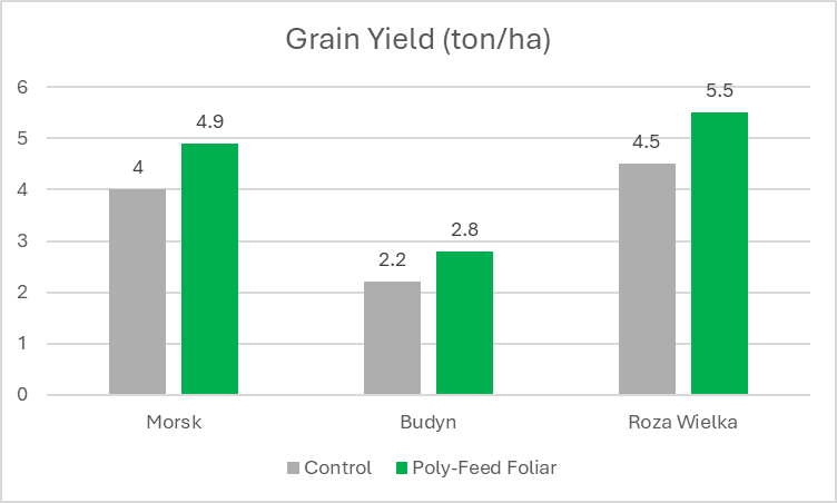 Poly-Feed™ treatment: 5 kg/ha at tillering and 5 kg/ha at earing.