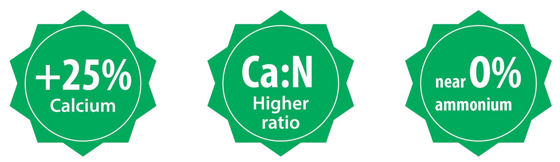 - Higher nitrogen content – 10% more nitrate-nitrogen than conventional calcium nitrate.