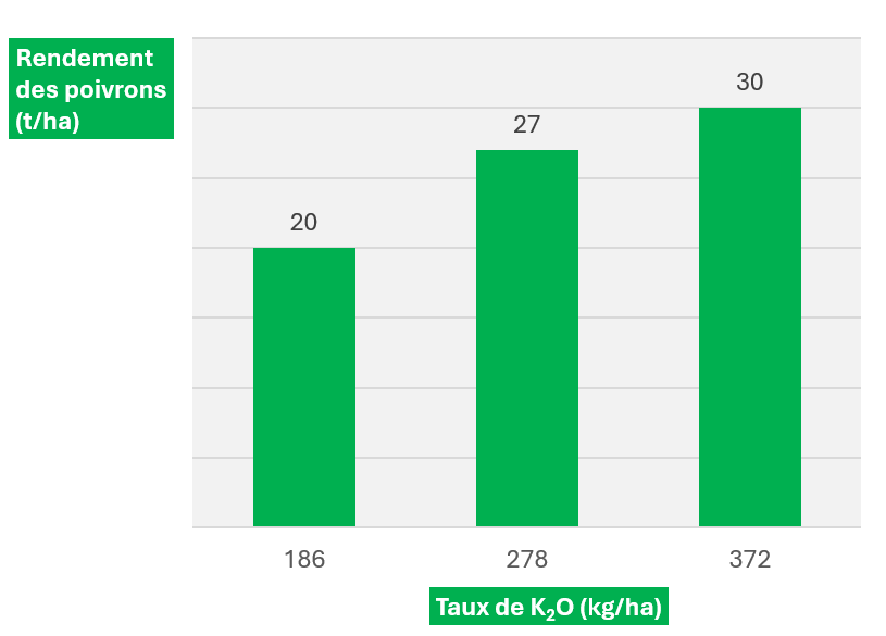 Effet du taux de K sur le rendement des poivrons, à un taux d’azote constant de 224 kg/ha