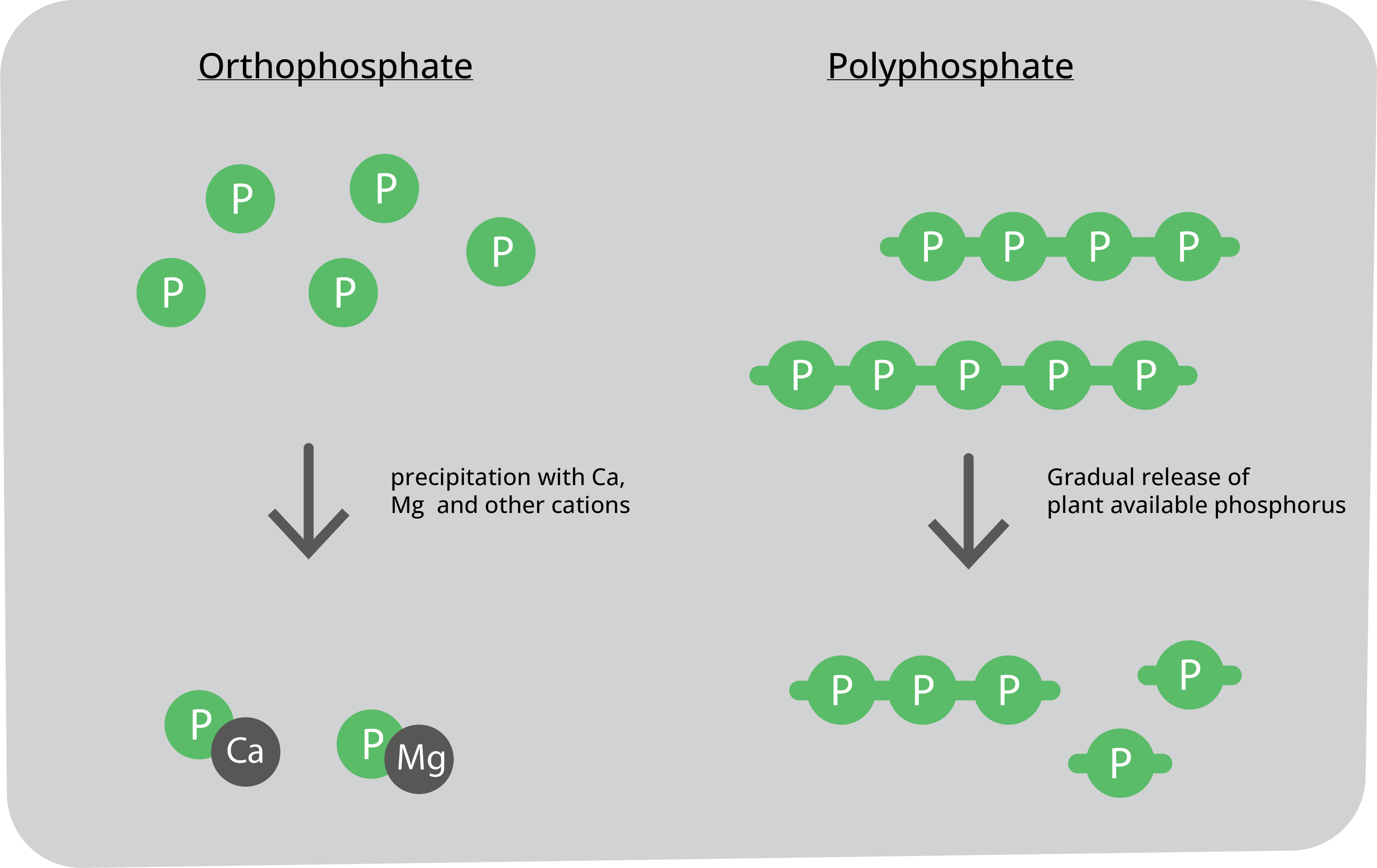 Orthophosphate ensures immediate phosphorus availability and prevents excessive alkalinity.