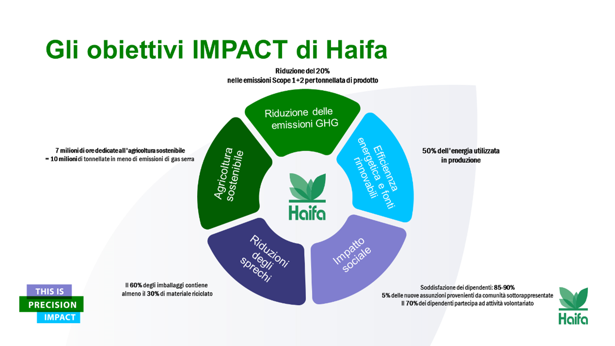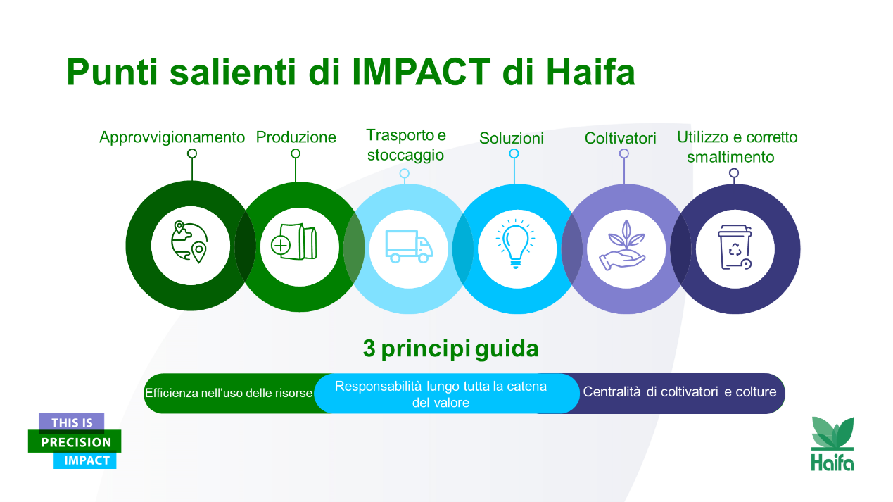 L'approccio olistico ESG e Impact di Haifa Group copre l'intera catena del valore. Dalle politiche aziendali e decisioni strategiche alla gestione quotidiana, dallo sviluppo iniziale del prodotto alla produzione, distribuzione e gestione post-utilizzo, tutte le nostre azioni sono allineate con il nostro impegno per un impatto positivo.