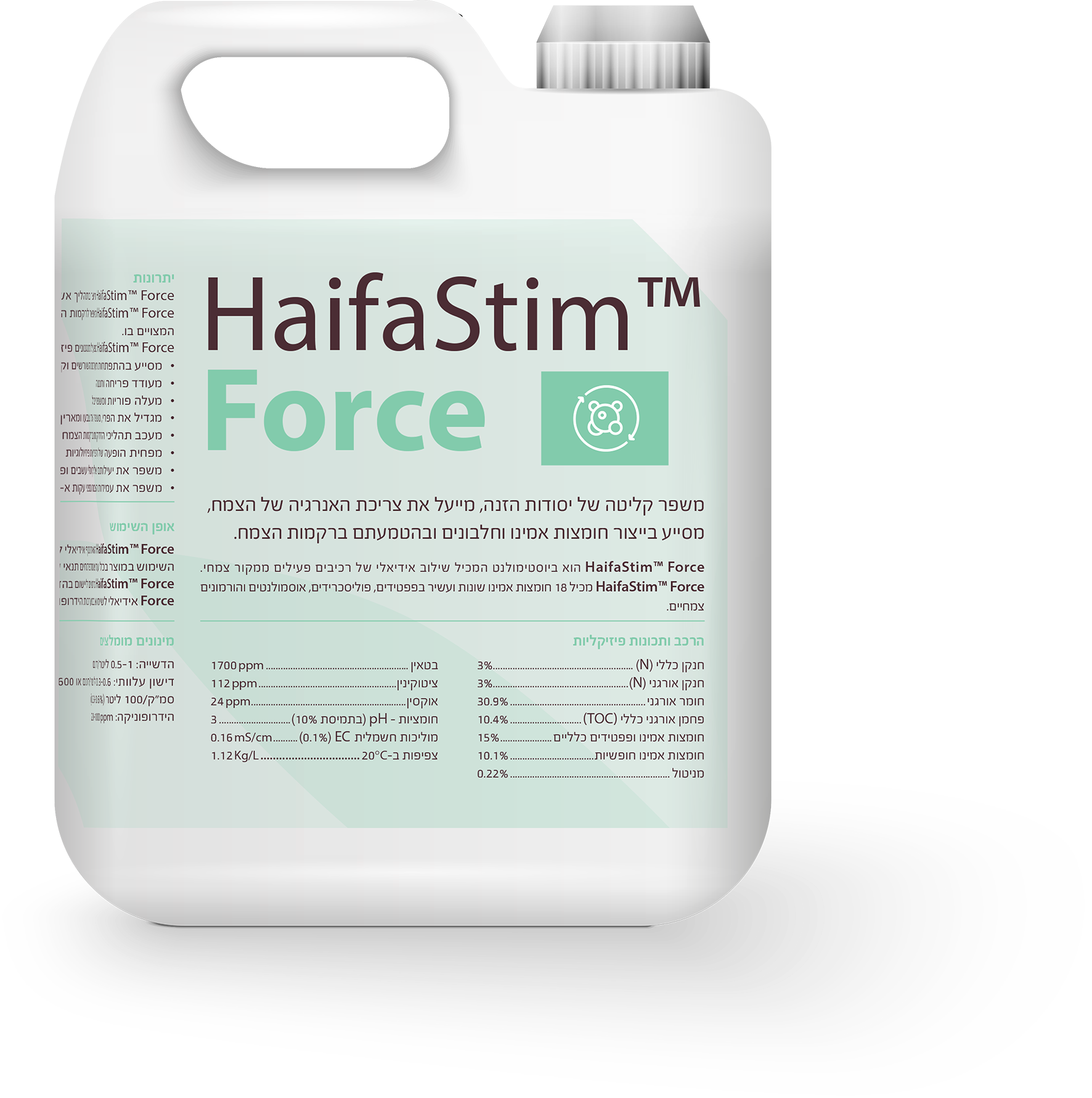 HaifaStim™ Humic-Amino אידיאלי לצמחים בשלבי ההתבססות, הנצה, פריחה וגדילת פרי, וכן במצבי עקה. מתאים לשימוש בהדשיה במגוון גידולים.
