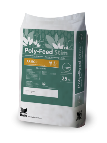 The silicon added to Poly-Feed™ Stim ARMOR formulae is in the form of fully soluble stabilized silicic acid, which ensures avialability for plant uptake and high efficiency. The silicone in Poly-Feed™ Stim ARMOR features neutral pH and it is free of sodium, which makes it superior to other silicon products. Poly-Feed™ Stim ARMOR is so efficient, that it needs only small amount to strengthens the plant and improves its growth.