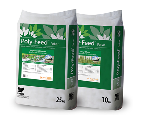 Haifa’s Poly-Feed™ Foliar solutions provide balanced NPK nutrition enriched with essential micronutrients, carefully formulated to meet wheat’s specific requirements. The unique Bonus™ additive enhances adhesion to the leaf surface and improves nutrient absorption, ensuring maximum efficiency.